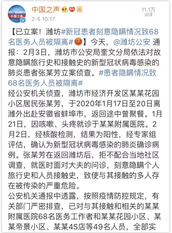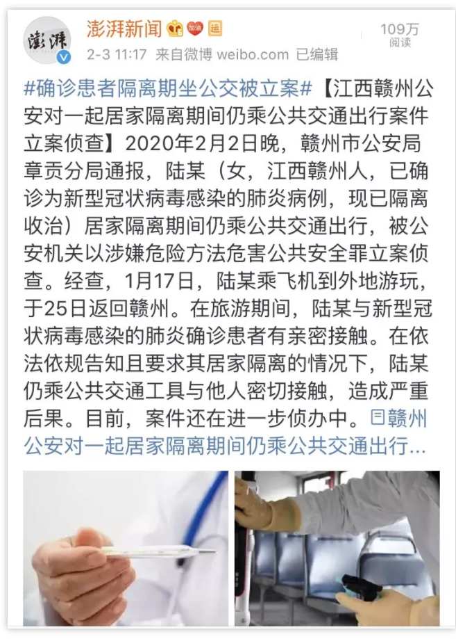 今天一大早,唐唐就被一则新闻给气到了!江西赣州一女子陆某在与新型冠状病毒性肺炎患者亲密接触后,不仅拒绝隔离,还乘坐公交车与他人亲密接触!唐唐我就想问一句:“你是脑子里面进浆糊了还是良心被狗吃了”?要不为啥心这么歹毒呢?自己身体都什么情况了还不好好隔离治疗,你这么急着去跟别人接触,就不怕以后没机会跟别人接触了?让唐唐我感觉无奈的是,这样的人远不止她一个!近日,深圳一女子在武汉探亲回来后,不仅多次隐瞒疫情发生地行程和发热病情,还不佩戴任何防护措施乘坐公共交通并在人员众多的聚集地停留!说真的,唐唐我现在特别想说脏话!!!明知自己发热且去过疫情发生地,且在自己已经有发热症状的情况下,还不想着赶紧治疗,却到处乱跑,你丫自己想找死麻烦别连累其他人好吗???而在前几天,湖南常德也有这么个“自私鬼”!该男子从武汉回来后持续外出,到酒店吃酒席,跟20多个亲友吃团年饭!最终自己和81岁的老父亲都被确诊为新型冠状病毒肺炎感染者!让你别团聚非不听,这是想一顿团圆饭把自家亲戚都团灭吗???你做人这么自私,平时一定是没人爱吧!唐唐我有时候真的不明白,为什么总有那么些人喜欢凑热闹,少吃一顿宴席会掉几斤肉吗?前几天,晋江一男子在武汉返乡后,竟谎称自己是从菲律宾回来的!还参加了当地的进主宴请!导致4000多人居家观察隔离!现在科技真的发达了,总有陌生人在千里之外就能把我气吐血!这么心虚的隐瞒自己的过往经历,是在那边干过什么见不得人的事情吗???更让唐唐我心痛的,是下面这个!潍坊一患者张某芳,刻意隐瞒自己的旅行史和接触史,导致68名医务人员被隔离!在这个全国医务人员都忙不过来,急缺医务人员的情况下,你这样的行为将会导致多少人得不到及时治疗你知道吗?这跟谋杀有什么区别???老老实实待在家隔离不好吗?别再给社会添乱了行吗?你们就算是瞎了,耳朵总没聋吧?看不见听不到我们的一线医务人员有多拼吗?火神山医院才刚刚投入使用,就有一名医护人员因为高强度工作中暑晕倒!这可是2月份啊!却因为太累中暑晕倒了!这工作强度有多大你们心里就不能先想一下吗?年过70的李兰娟院士现在每天只睡3小时,只为能够早日制定出诊疗方案!一线医务人员的脸都被口罩勒出了深深的痕迹!你以为她们不在乎自己的容颜吗?你以为她们不想要打扮的漂漂亮亮的吗?不,她们只是为了哪怕能多救助一个病人而已!1月31日,深圳医生马佳晕倒在防疫一线,此前她已经连续作战十几天,而在经过治疗后,第二天马佳便继续回到工作岗位!河南一防疫医生因怕传染给家人,自制饭桌在家门口吃饭!这是与家人一起吃饭时相隔最远的距离,但它也是最近的距离!因为有爱在填充这段距离,里面还夹杂着一份叫做“责任和担当”的东西,而这些,正是前文所写那些“自私鬼”所缺的!!!湖南一乡镇医生更是因劳累过度因公殉职猝死!他才28岁啊!多好的年纪啊!!!为了阻击疫情扩散,我们的民警也走上了抗疫一线!1月28日,吉林58岁民警刘大庆因在抗击疫情时突发疾病殉职。唐唐在此希望所有看到这篇文章的人,都能够做好自己,尽量别出门,佩戴好防护措施!讲究卫生勤洗手!别我们的警察医生战士都在一线拼命,而你放着能在家好好睡大觉看电视的机会不珍惜,傻儿吧唧的出门乱跑给国家添乱!!!最后!唐唐要说的是:就当我求你们了!好好待在家别出门行吗???转载至:唐唐频道(素材来源@平安北京、@澎湃新闻、@新京报@央视新闻、@一手Video、@人民视频等)