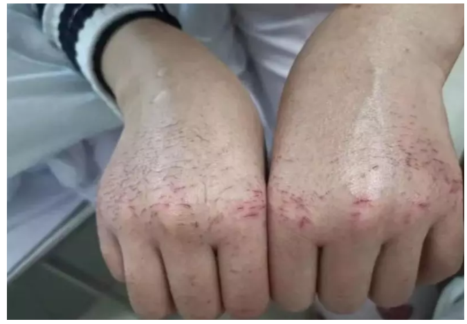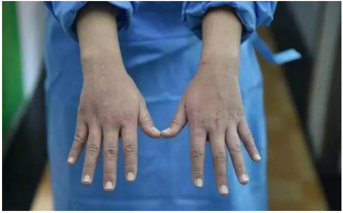 这是一双抗疫护士的手。 血痕道道。